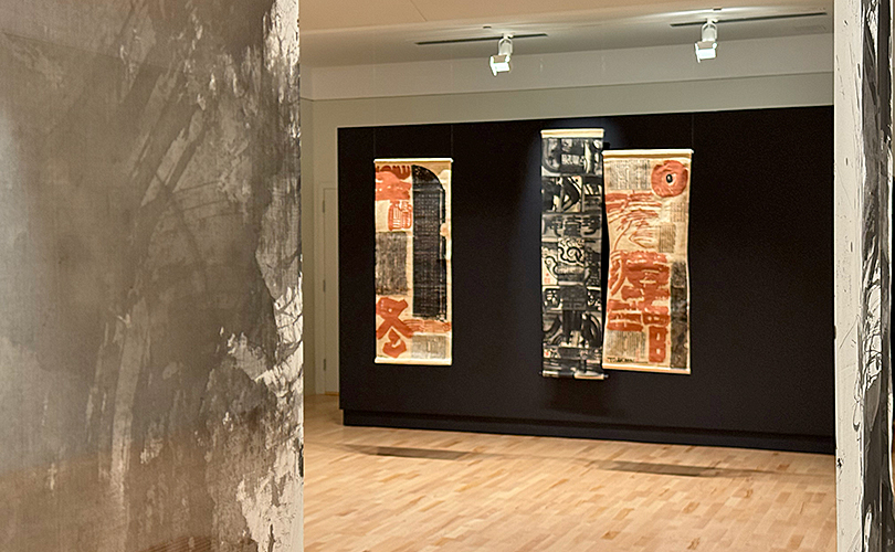 In collaboration with the Art Vietnam Gallery in Hanoi, the Flinn Gallery has organized Vietnam: Tradition Upended. The exhibition was curated by Debra Fram and Barbara Richards, who have worked with browngrotta arts on previous exhibitions at the Flinn, and Suzanne Lecht from Art Vietnam Gallery. The exhibition’s origins are several years old.  Fram and Richards had travelled to Vietnam in 2019 and in Hanoi met Lecht, who it turned out, had lived in Greenwich on the 80s. The three remained in contact and over the next four years, Vietnam: Tradition Upended  took shape. The exhibition features nine interdisciplinary artists who work in a variety of mediums and styles. We were excited by the diversity on display and particularly taken by the mixed media works of Nguyen Cam (b.1944, Haiphong, Vietnam) and the calligraphic statements of Pham Van Tuan (b.1979, Thanh Hoa province, Vietnam), 35 years his junior.