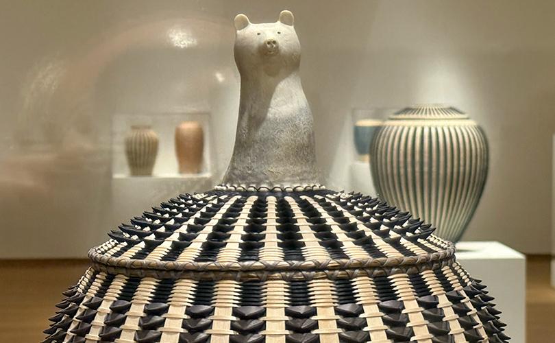 Jeremy Frey baskets at the Bruce Museum in Greenwich, Connecticut. Photo by Tom Grotta