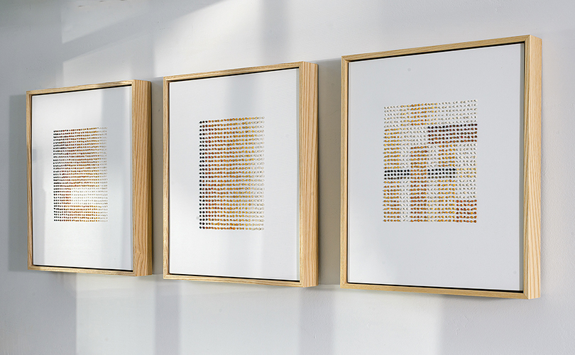 Sue Lawty is recognized as one of Britain’s foremost contemporary textile artists. Her work encompasses weavings, constructed pieces, and drawings in both two and three dimensions, exploring rhythm, repetition, and interval. Lawty creates assemblages featuring thousands of tiny stones, like Coast, East Riding of Yorkshire 1-3, each smoothed by the sea and meticulously hand sorted, Whether making drawings and assemblages using tiny stones creating a kind of pixelated cloth, or weaving in linen, hemp, raphia, or lead, she talks of the “integrity of mark making intrinsic to particular thread or structure.” Lawtywill also be running an online workshop, Rhythm & Repetition in Woven Tapestry on Sunday, April 26 and May 3, 2026 on Zoom from 2 – 5pm GMT. To book your spot, visit the selvedge website HERE.