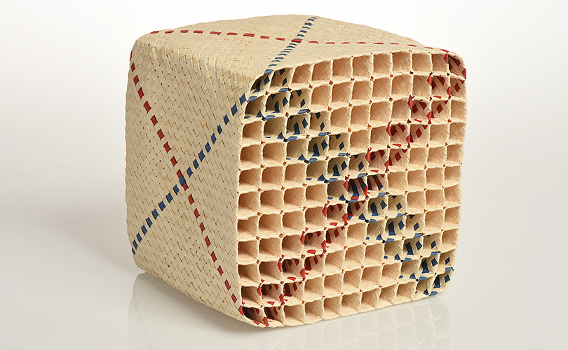 From a mathematical point of view, my baskets turn out to polyhedra shapes abstracted in pure geometry. However, that doesn’t mean I created the form using geometrical structure. It means the form has appeared as redefined. Geometry might be incorporated into the method, but it would seem that the forms come out from another world.