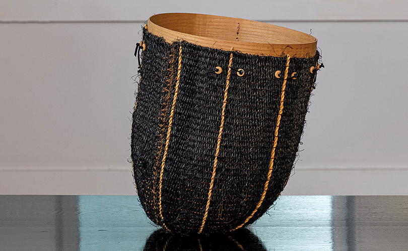 The inspiration for Lizzie Farey’s work comes from the inherent qualities found in the natural materials around her Scotland location. Using willow, birch, heather, bog myrtle, and many other locally grown woods, her work ranges form traditional to organic sculptural forms — much of it pushing the boundaries of traditional technique. In Willow Ball – 2 and Pussy Willow Bowl, willow seems to have been plucked unchanged from its natural surroundings, yet, with shape and color, the artist adds more. The works achieve Farey’s aim, to create baskets as reminders of the intense pleasure of nature – taking viewers to a place and a time that is universal.